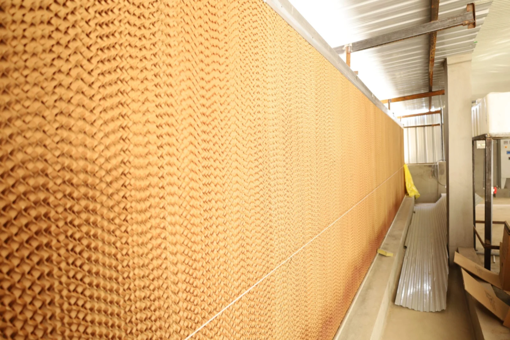 - High Cooling Efficiency: The Honey Bee Cooling Pads are designed using high-density cellulose material with a unique honeycomb structure. This design maximizes the surface area for water evaporation, which effectively lowers the temperature inside poultry houses, creating a cooler and more comfortable environment for the birds.